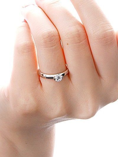• 真上から見た印象と真横から見た時の印象がまったく異なる、たいへんモダンなリングです。ダイヤモンドを両手で捧げ持っているようなデザイン。