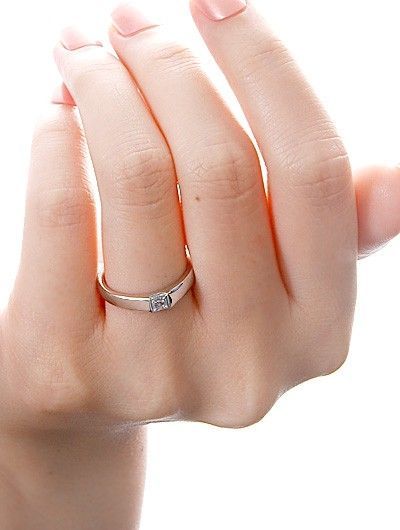 • なだらかな丘のトップにスクエアシェイプダイヤモンドをセットしたような、シンプルでシャープな印象のリングです。
