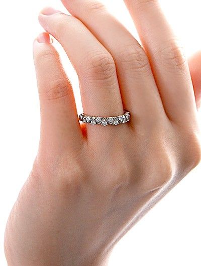 • 腕の半周ほどの部分にラウンドシェイプのブリリアントカット・ダイヤモンドを連ねた、ハーフエタニティリングです。