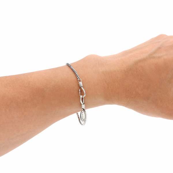 細かく編まれたチェーンの質感が、カジュアルにもきれいめにも自然に馴染みます。