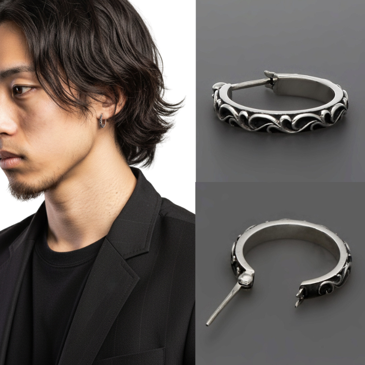 • ブランドの歴史の中でも長く愛されてきた、アラベスク(唐草)模様のフープピアス。