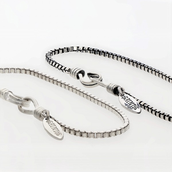 細かく編まれたチェーンの質感が、カジュアルにもきれいめにも自然に馴染みます。