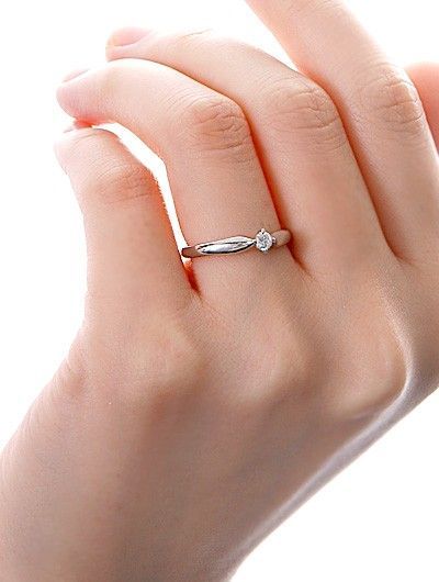 • トップで美しい水仙の葉の先端が触れ合っているような、エレガントなラインのペア・マリッジリングです。女性用はトップにラウンドブリリアントカットのダイヤモンドを4つの爪で留めています。