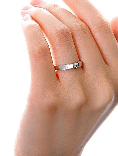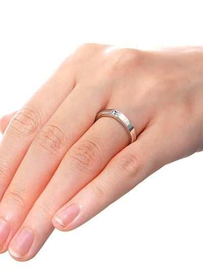 女性用はトップにスクエアシェイプのダイヤモンドをセットしました。エレガントでシャープな印象のペア・マリッジリングです。