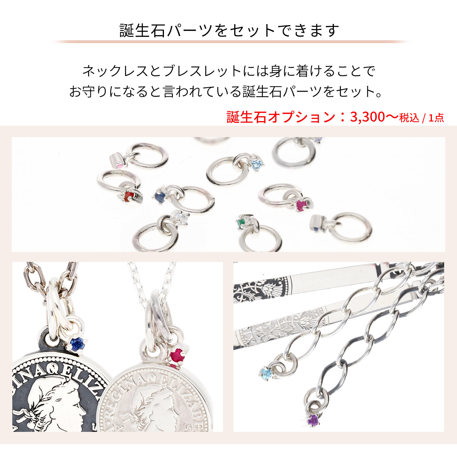 - タンザナイト(12月誕生石)、トパーズ(11月誕生石)、トルマリン(10月誕生石)、サファイア(9月誕生石)、ペリドット(8月誕生石)、ルビー(7月誕生石)、ムーンストーン(6月誕生石)、エメラルド(5月誕生石)、ダイヤモンド(4月誕生石)、アクアマリン(3月誕生石)、アメジスト(2月誕生石)、ガーネット(1月誕生石)