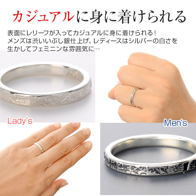 メンズアイテムには「イブシ加工」、レディースアイテムには「白上げ鏡面仕上げ」の表面加工をそれぞれ施してあります。個体差があり商品画像とはお色味が異なる場合がございます。あらかじめご了承ください。