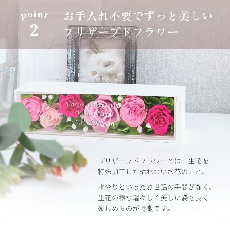 プリザーブドフラワーは、生花の美しさを長期間キープできる特別な加工を施したお花。