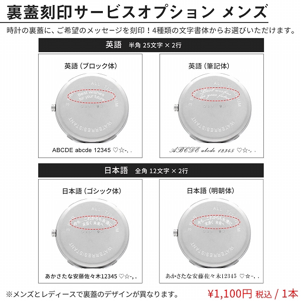 裏ぶたに刻印可能で、プレゼントにもおすすめです。