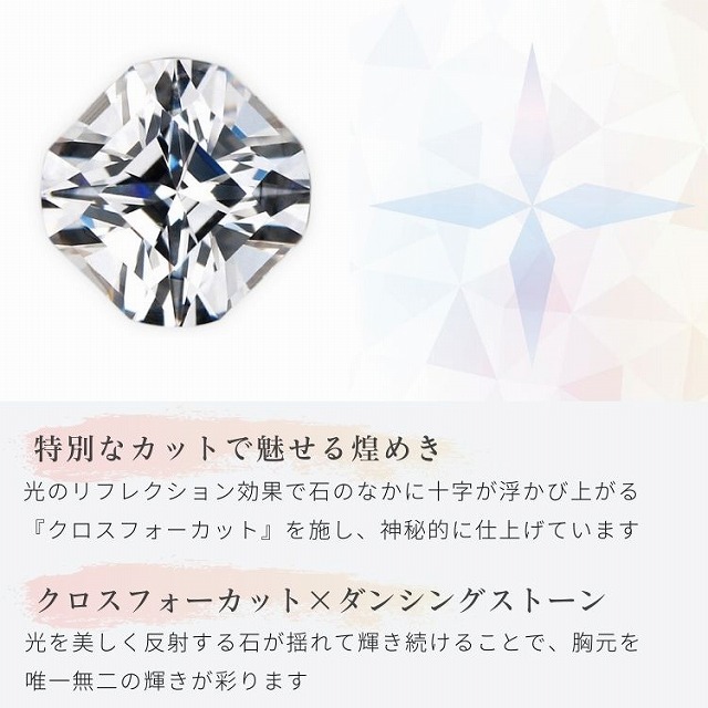 落ち着いた上品さを備えながら、センターに輝く大粒のダンシングストーンがわずかな動きに反応して揺れ続け、日常に特別な輝きを添えてくれます。