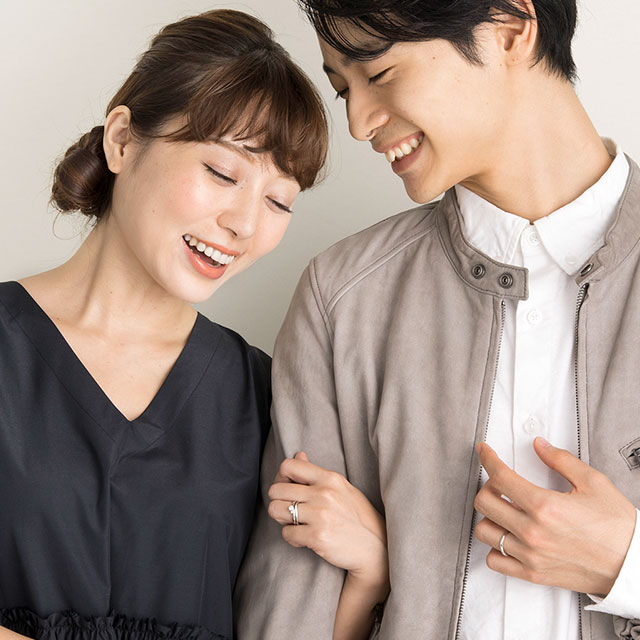 ペアで合わせたイメージは“赤く結ばれた運命の糸”。繋がるデザインのマリッジリング。