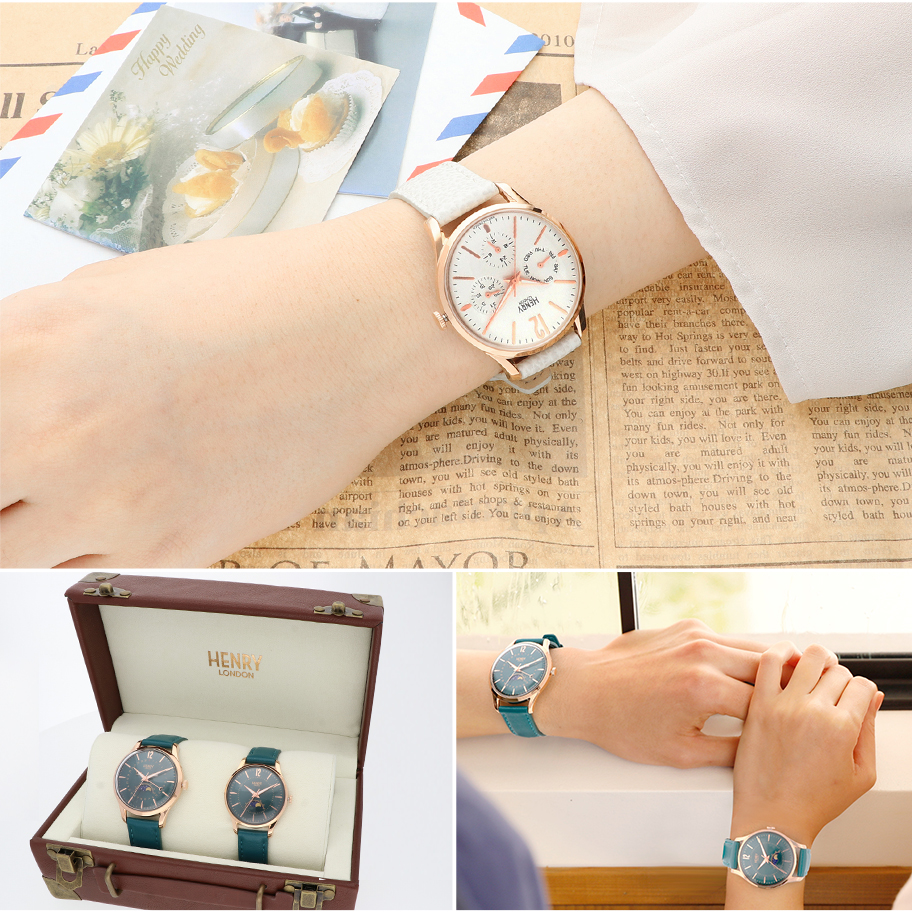ウェストミンスター宮殿やバッキンガム宮殿などロンドンの有名な歴史建築物が集中する地区に位置するウェストミンスター駅からインスピレーションを受けた『ウェストミンスター シリーズ』。美しいイエローゴールドのケースとマットな質感の文字盤の組み合わせがシックな印象。ドーム型レンズの丸みがデザインと見事にマッチしてヴィンテージ感が楽しめます。黒は引き締め色でどんな色とも合わせやすいので、デイリー用の時計にもピッタリです。径39.0mmのメンズと合わせてペアウォッチとしてお使いいただけます。