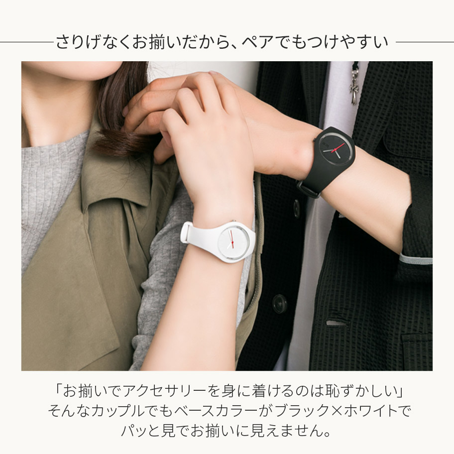 スポーティーでカラフルなアイスウォッチの中でもシックで身に着けやすいブラック×ホワイトをペアにしたJ.Well限定モデル。