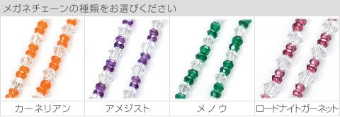 爽やかなカラーの天然石を使用したメガネチェーン。メガネをかけているときには顔周りを華やかに演出します。
