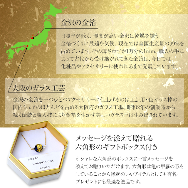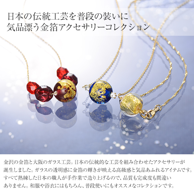 日本の伝統的な金箔とガラス工芸を組み合わせたアクセサリー。