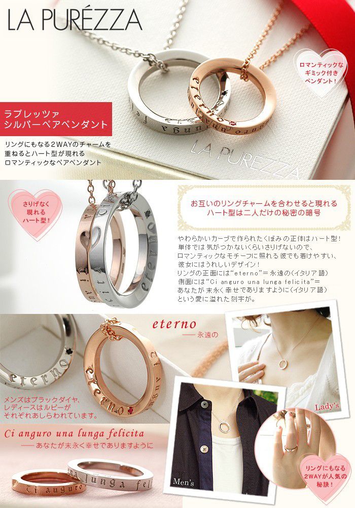 LA PUREZZA ラ プレッツァ SILVER シルバーペアペンダント ブラックダイヤモンド ルビー