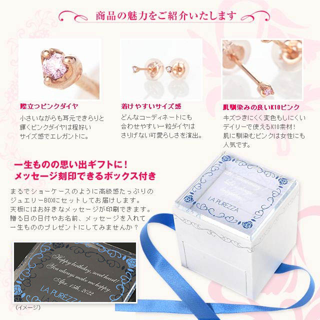 専用パッケージにセットしてお届け!希少性の高いピンクダイヤモンドはプレゼント等におススメです。