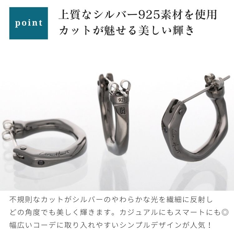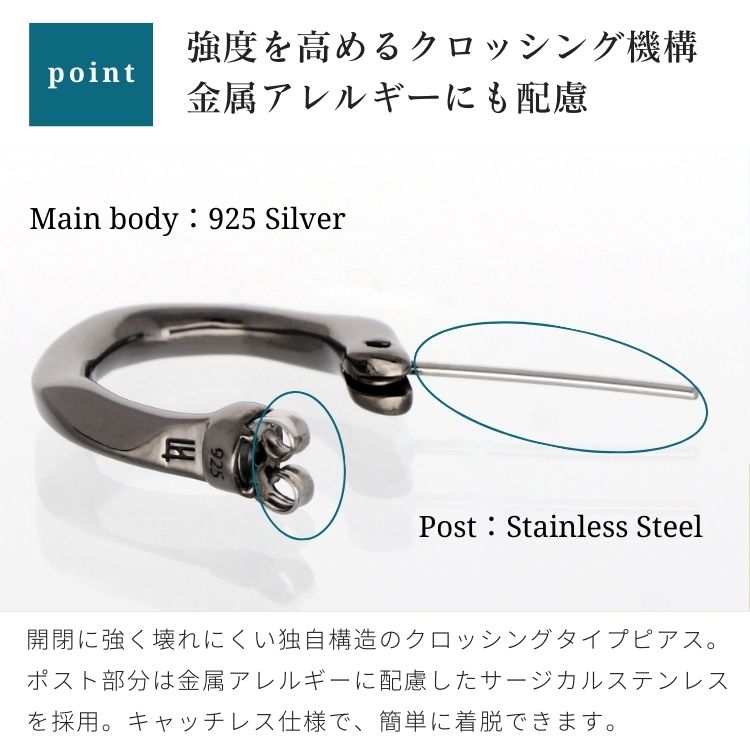 - ※ピアス商品は衛生上の理由から、お客様都合による返品交換は受付けておりませんので予めご了承ください。 ※片耳用の販売となりますのでご注意ください。 ※ 照明の関係により、実際とやや色味が違って見える場合があります。シルバーの素材感をいかしたままライトブラックコーティングを施しています。若干の個体差は特性としてご理解くださいませ。 ※刻字をご希望の場合は代引き支払いをご利用いただけません。