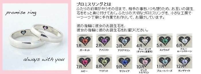 - キュービックジルコニア、ピンクトルマリン、タンザナイト(12月誕生石)、トパーズ(11月誕生石)、サファイア(9月誕生石)、ペリドット(8月誕生石)、ルビー(7月誕生石)、ムーンストーン(6月誕生石)、エメラルド(5月誕生石)、アクアマリン(3月誕生石)、アメジスト(2月誕生石)、ガーネット(1月誕生石)