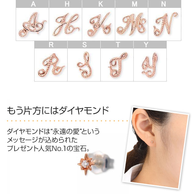 表情の異なるデザインが魅力的なピアス。ダイヤモンドの優美なきらめきに視線を奪われます。
