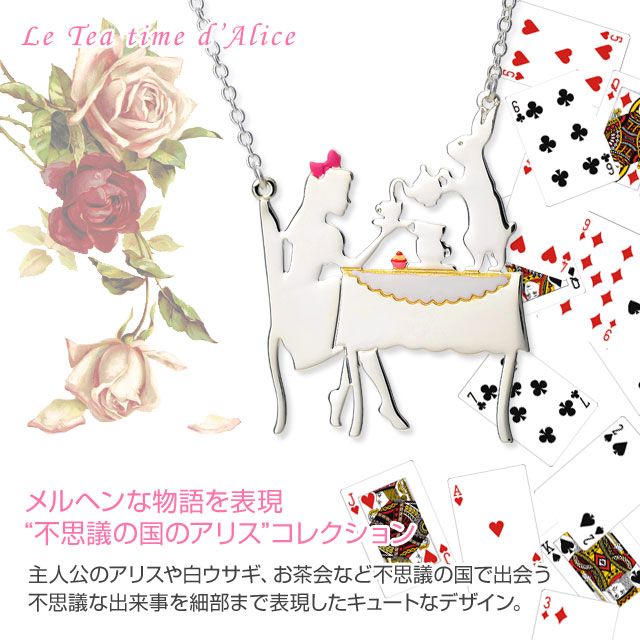 アリスのお茶会を連想させる、左右異なるデザインが印象的。見ているだけで楽しくなれるポップな