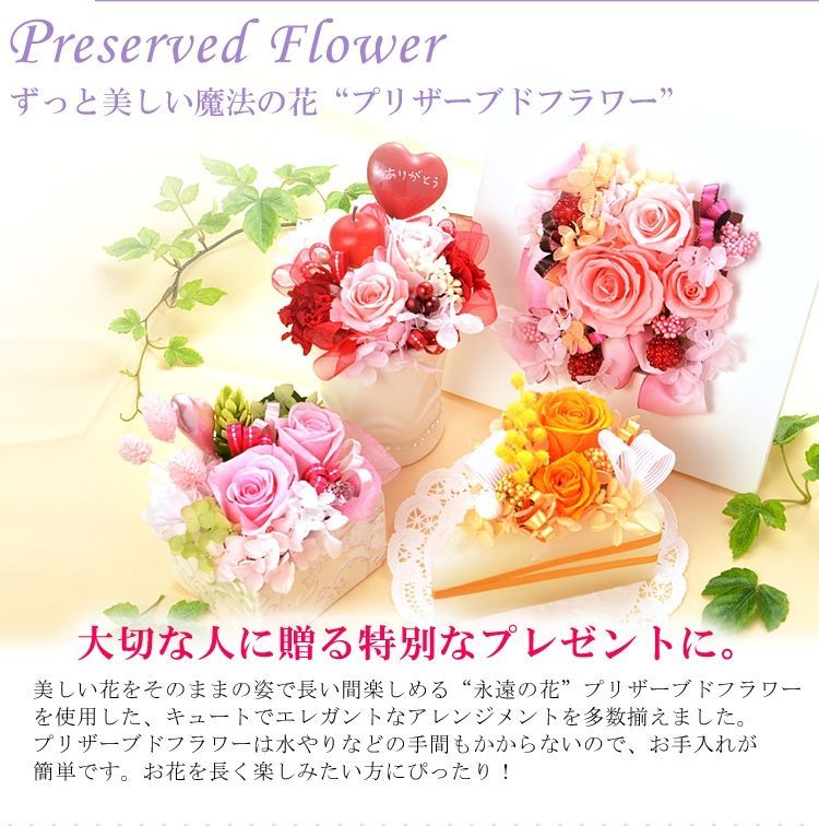 ※プリザーブドフラワーは形状、色合いなどは個体差があるため、写真とは多少異なる場合がございます。