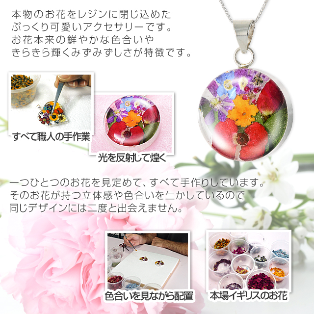 本物のお花が小さなネックレスに閉じ込められた、神秘的で可愛らしいネックレスです。