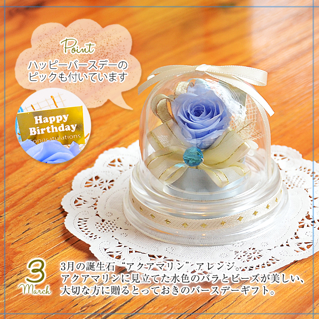 3月の誕生石『アクアマリン』をイメージした誕生石モチーフのプリザーブドフラワーです。。