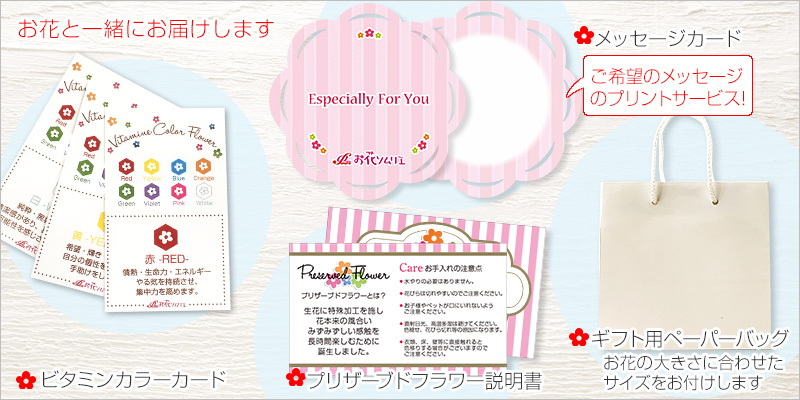 ・無料プレゼント!ご希望の方には「お花ソムリエ」オリジナルメッセージカード。(4行各10文字迄)