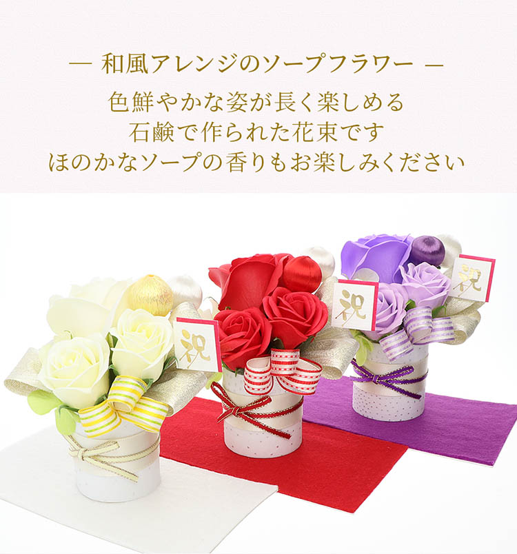 ご両親、祖父母、お世話になった方へ、お誕生日のプレゼントや、節目の歳にあわせた色を贈って長寿をお祝いするのも素敵です。お部屋のインテリアとして長くお楽しみいただける透明ケース入り。