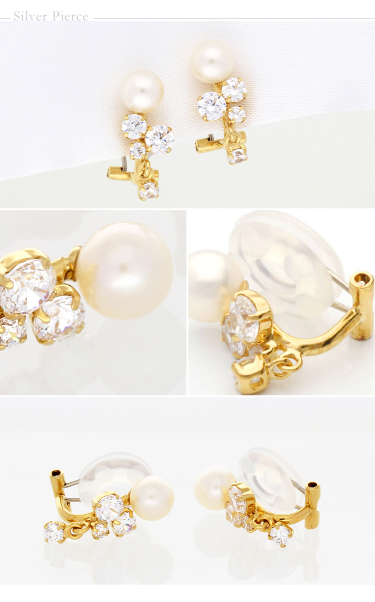 ゴールドとストーン、パールの輝きがお互いを引き立てあい耳元を華やかに演出します。