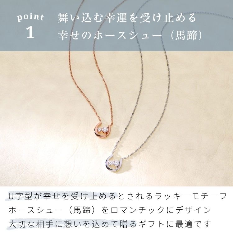 ラッキーモチーフの中でも人気の高いホースシューのネックレス。