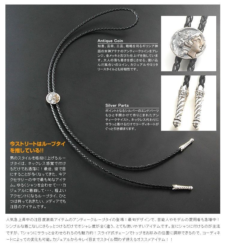 知恵、芸術、工芸、戦略を司るギリシア神話の女神アテナのアンティークコインをアレンジしたループタイです。