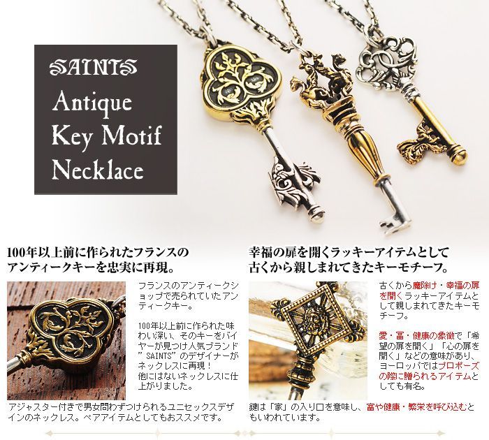 フランスに古くからあるアンティークな鍵のデザインをモチーフとしたネックレス。持ち手の部分