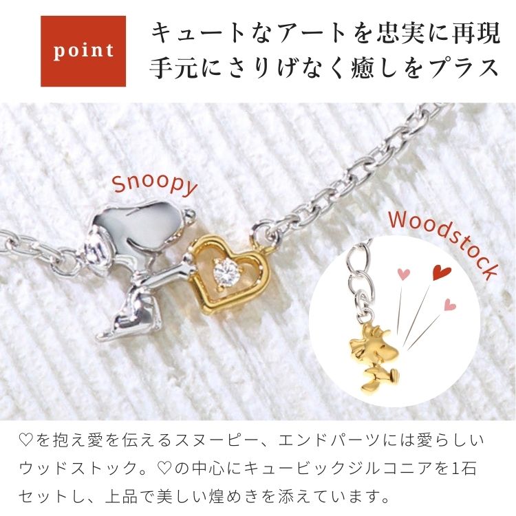 たオープンハートの中心に、煌めくキュービックジルコニアをセットしています。エンドパーツはウッドストックで、細部まで可愛らしく。