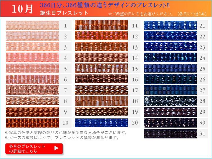 落ち着いた色合いのビーズが施された、10月誕生日の方向けのデザイン。ファッションの邪魔をしない
