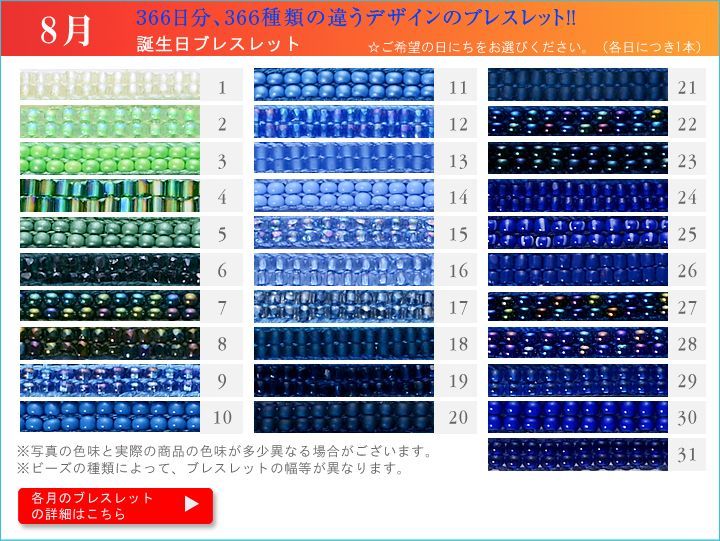 8月の誕生日ブレスレットは夏の青空のようなセルリアンブルー系、優しい色合いが女性らしい