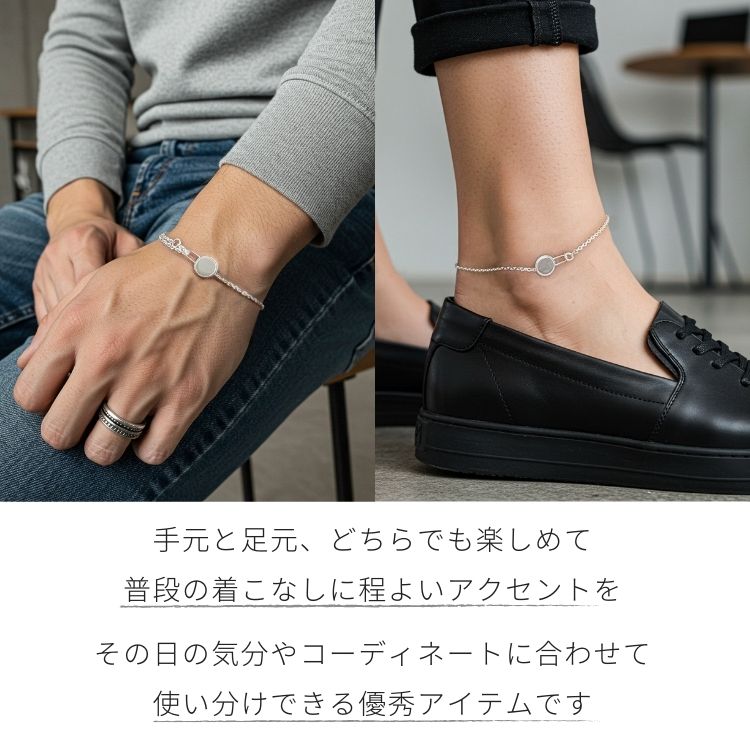 ユニセックスな雰囲気で世代も問わず身に着けやすいシンプルなブレスアンクレットです。