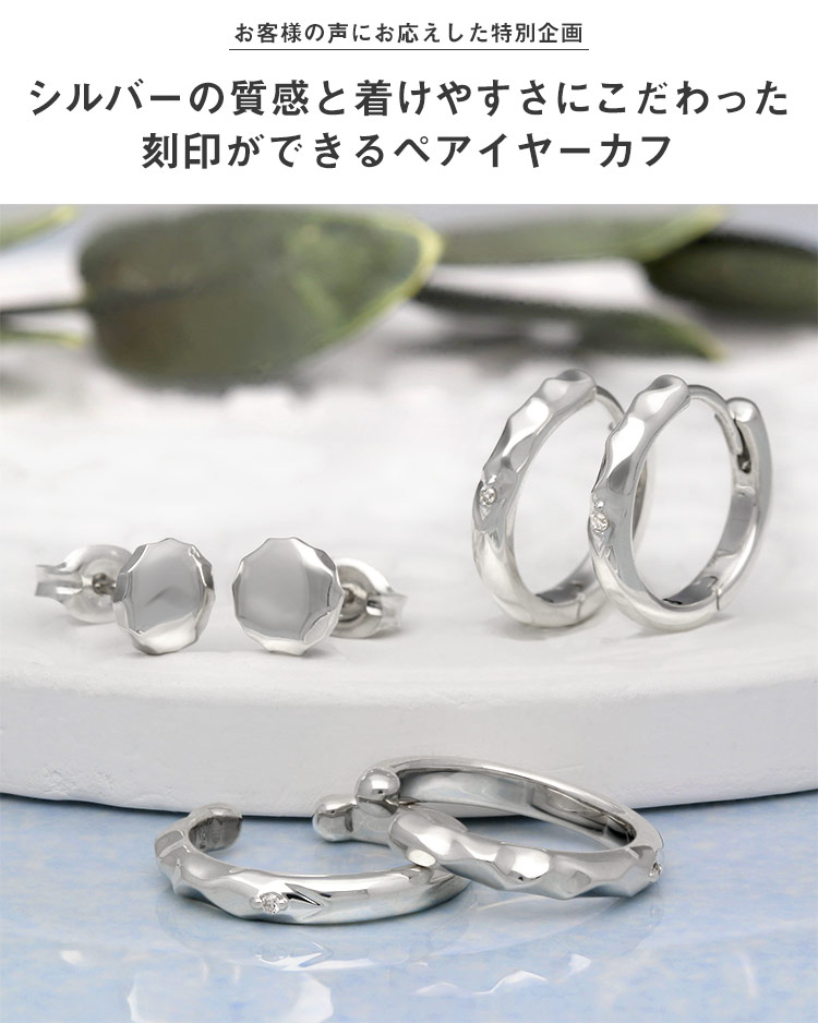 シルバーのテクスチャーにこだわった上質なペアのイヤーカフ。