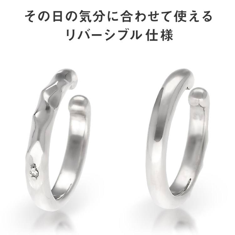 「永遠」を表すダイヤモンドが刻まれている表面とシンプルな裏面を気分に合わせて使い分けられるリバーシブルタイプです。