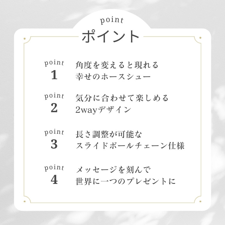 立体的で適度なボリューム感があるトップは角度によってホースシューモチーフが見えてきます。