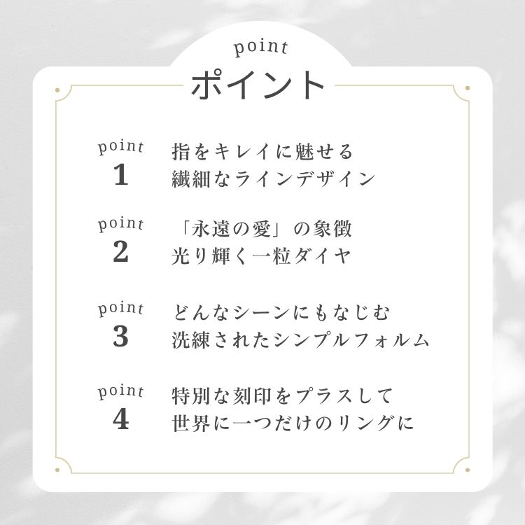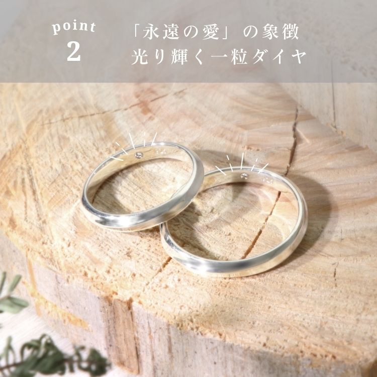 リングの裏側には「永遠」を意味する一粒ダイヤモンドをさりげなくセット。