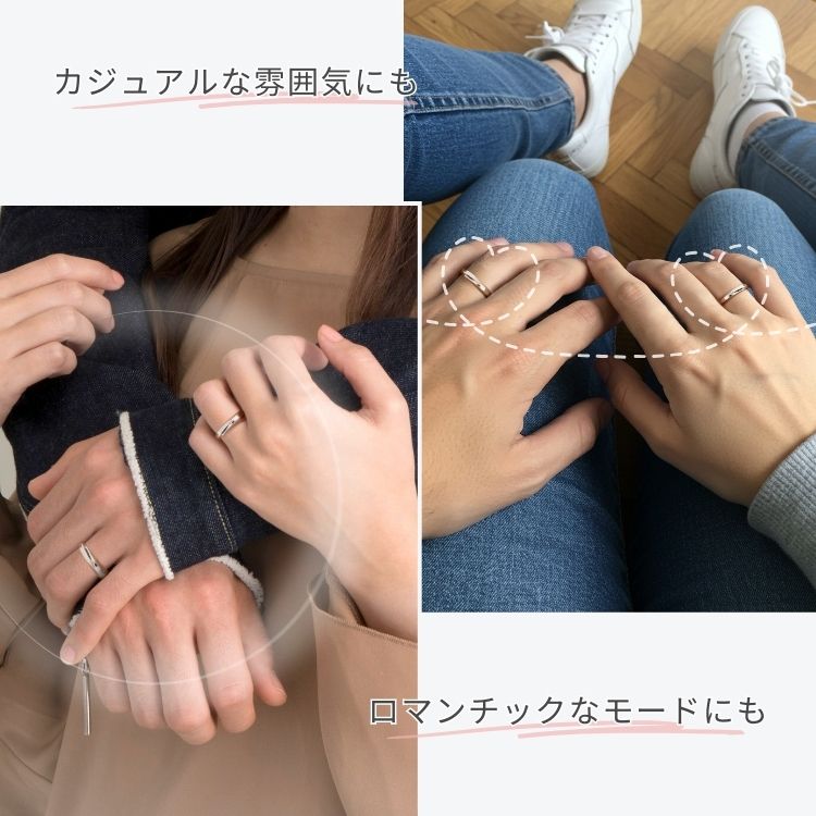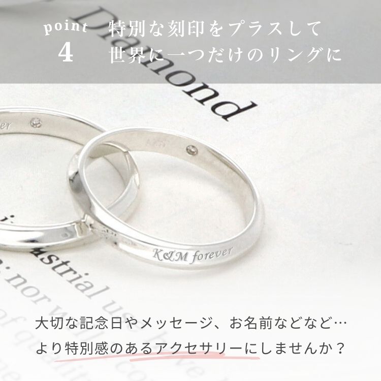 裏側にはもちろん、指輪のラインに沿ってメッセージや名前を刻印することができるため、オーダーメイド感をお楽しみいただけます。