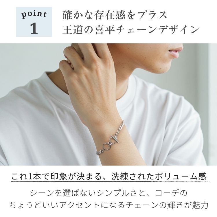 重厚感がありながらも、滑らかな着け心地で、手首に心地よくフィットするデザインです。