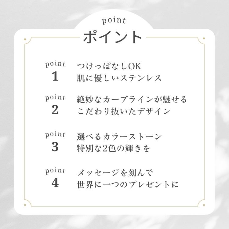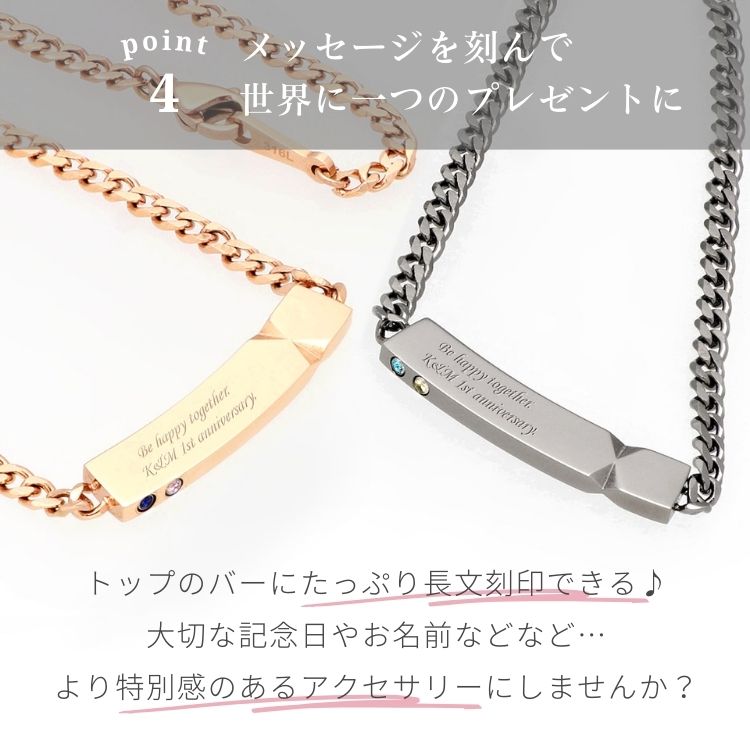 お名前や記念日、好きな言葉をひっそり刻んでふたりだけの特別なアクセサリーに・・・