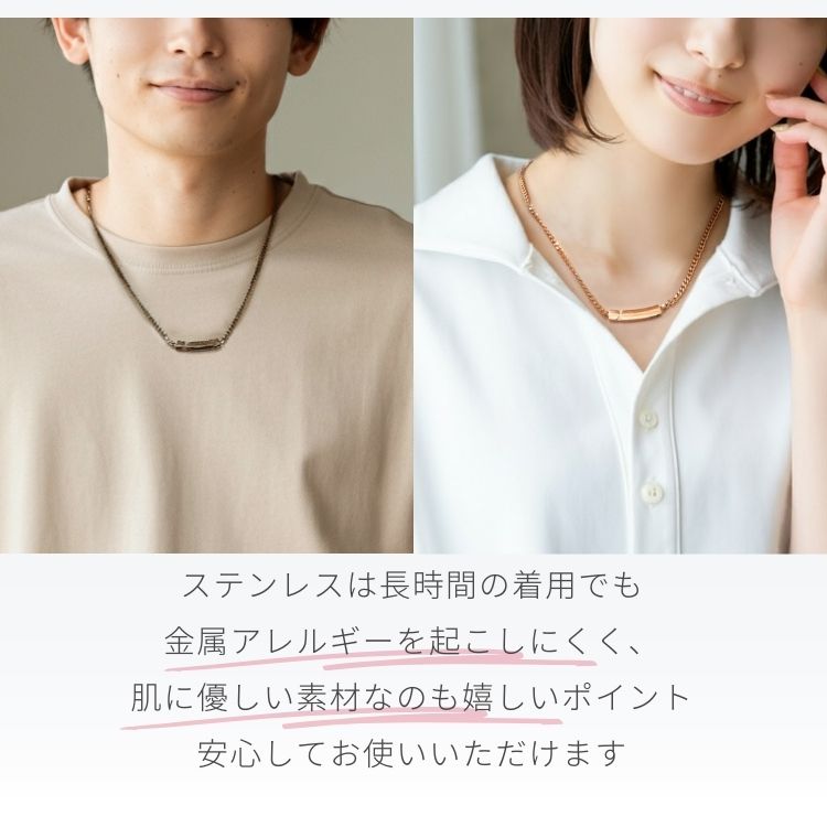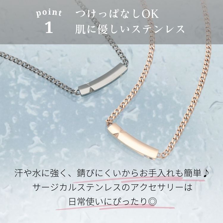 金属アレルギーを起こしにくく、傷や変色に強いサージカルステンレスを使用しています。