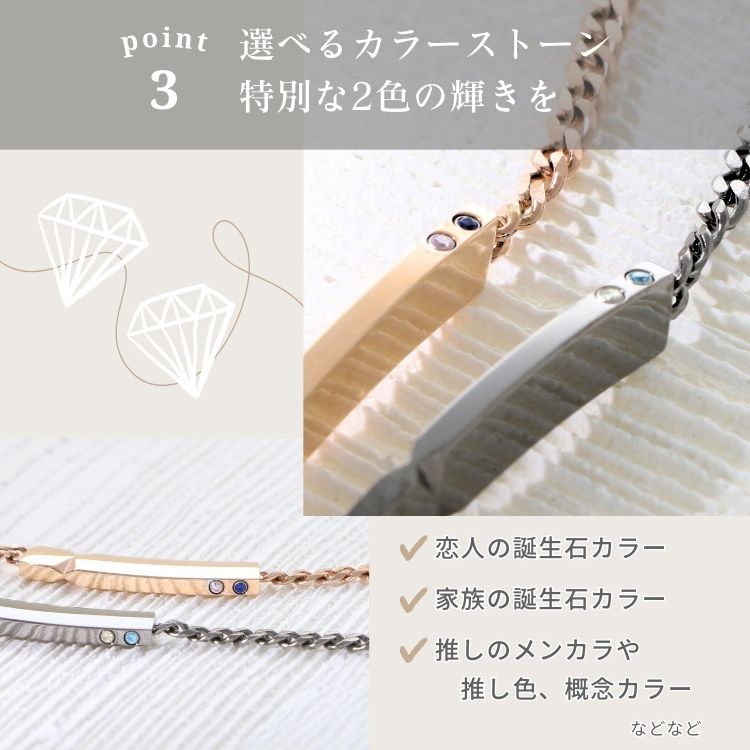 お互いの好きな色や誕生石カラーの組み合わせにしておそろいで身に着け合うことで、絆が深まりそう。