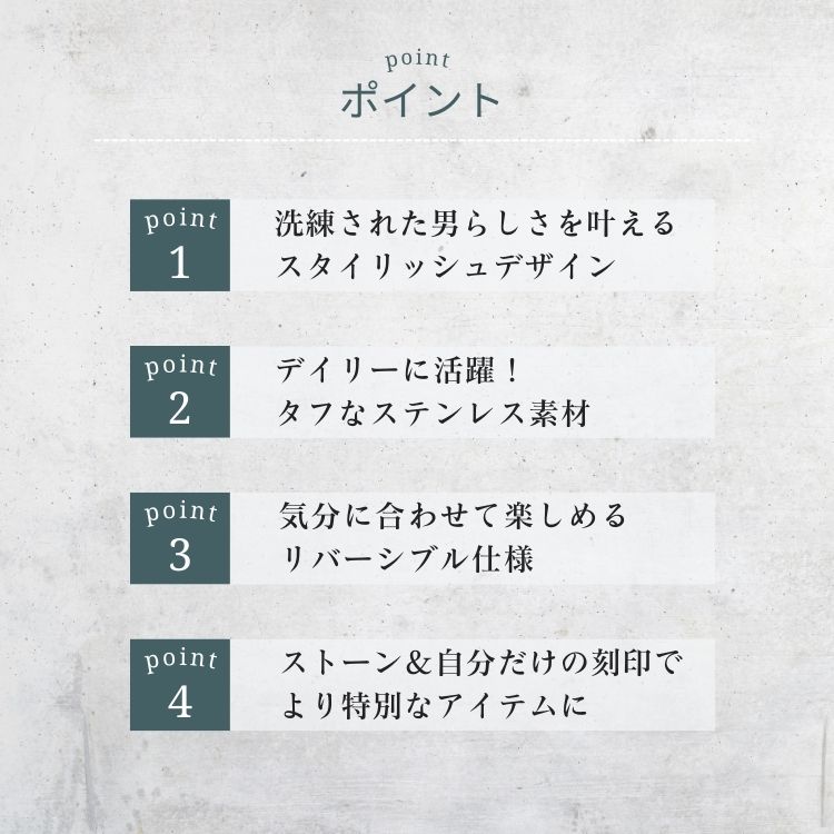 素材も傷や変色に強いサージカルステンレスを使用し、デイリーユースに最適なアイテムです。