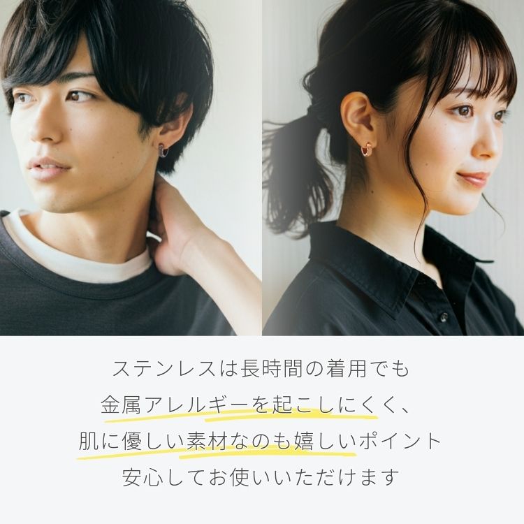 金属アレルギーを起こしにくく、傷や変色に強いサージカルステンレスを使用しています。