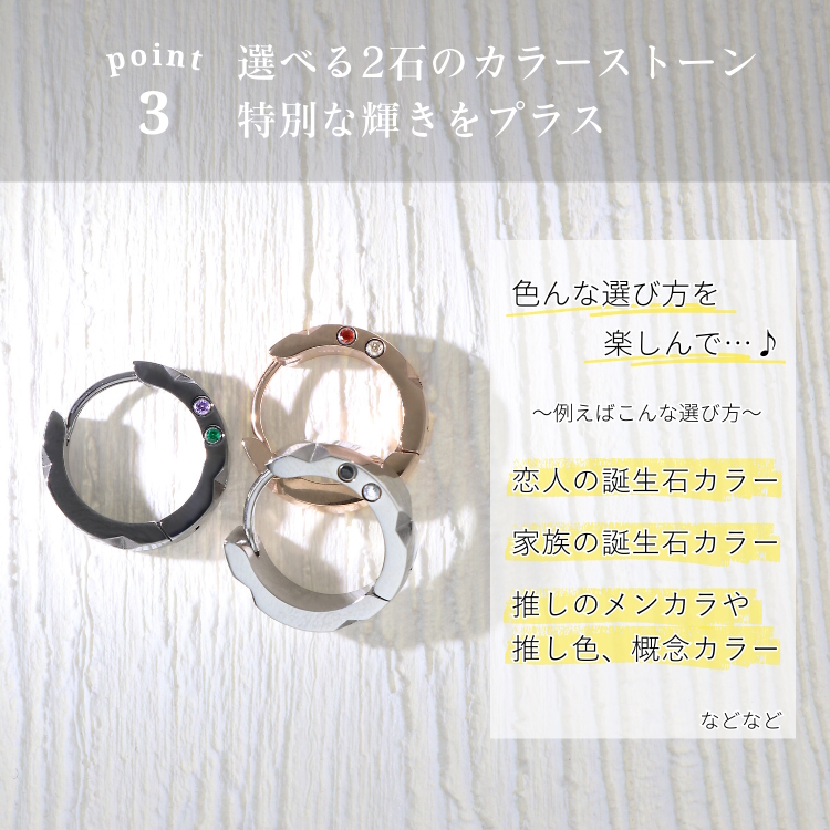 お互いの好きな色や誕生石カラーの組み合わせにしておそろいで身に着け合うことで、絆が深まりそう。