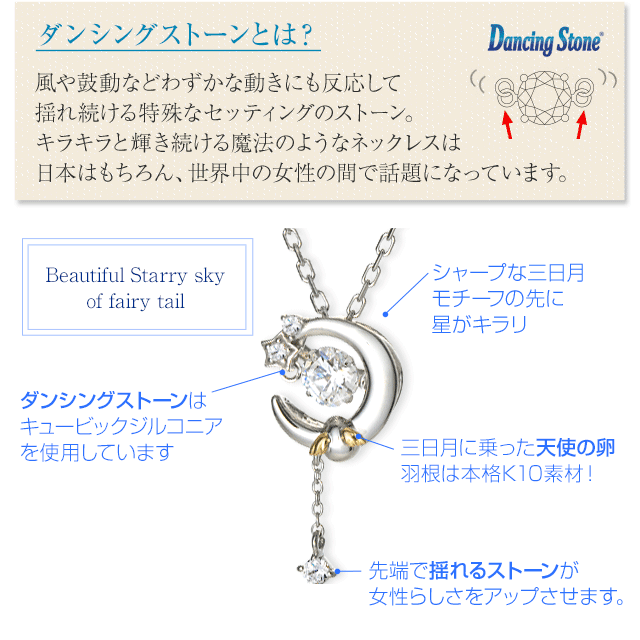 天使の卵 テンシノタマゴ シルバーネックレス ダンシングストーン 月 三日月 ムーン スター